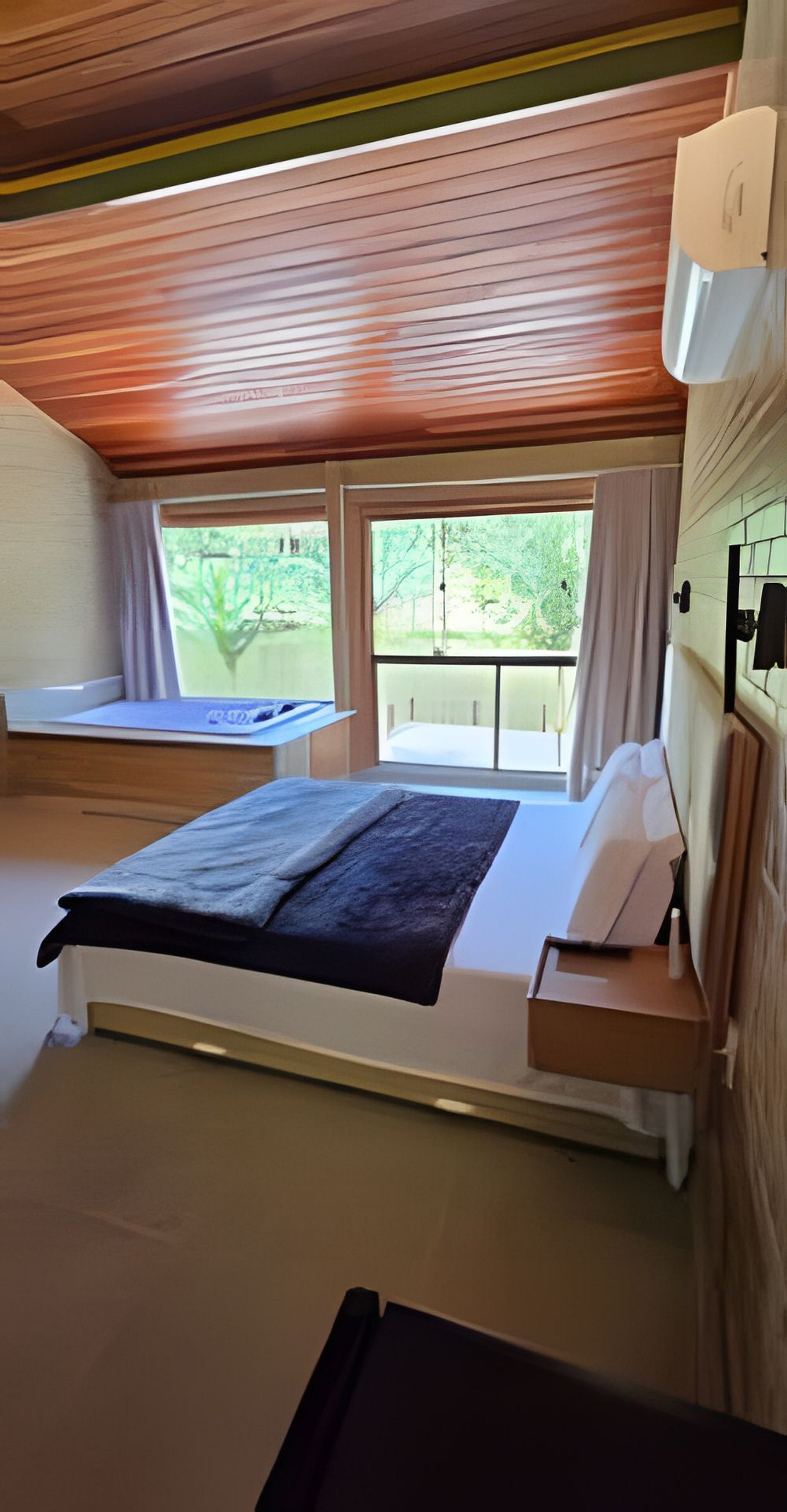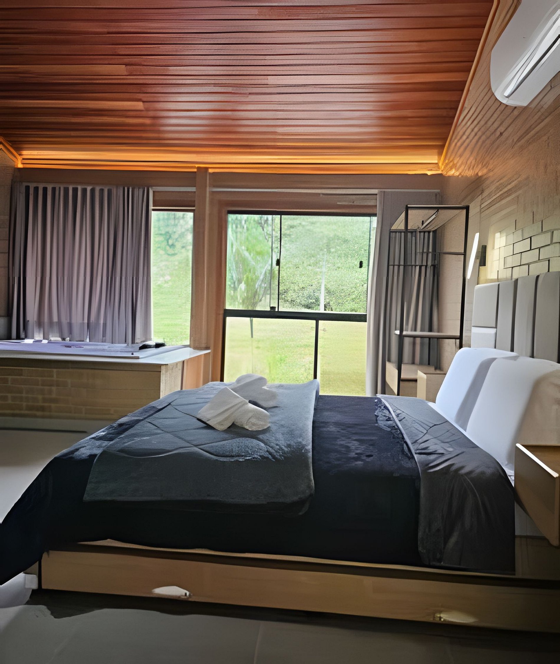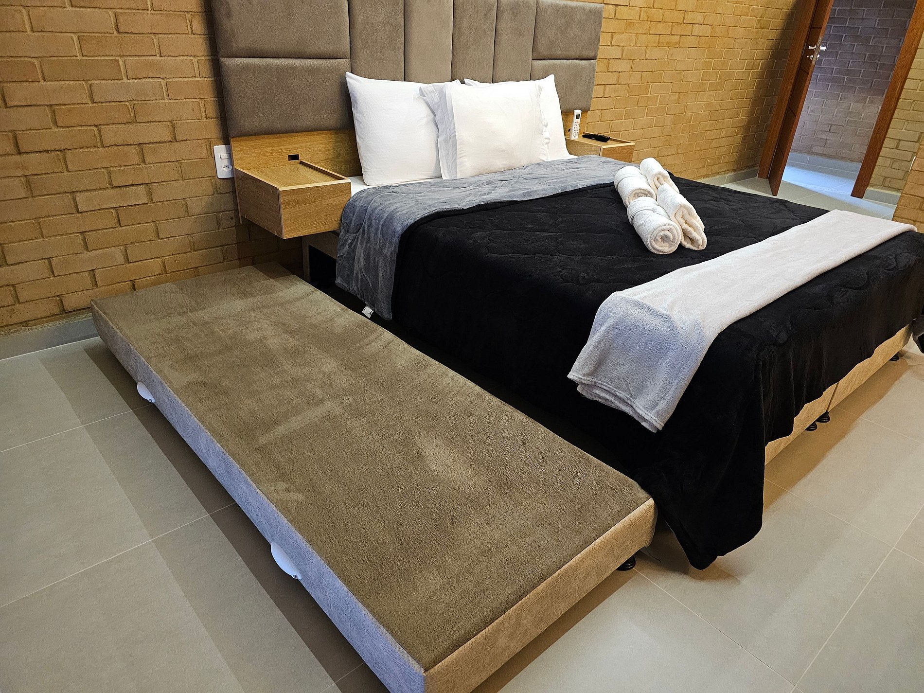 • Acomodações: cama de casal + duas camas auxiliares, ideais para casais, amigos ou famílias.