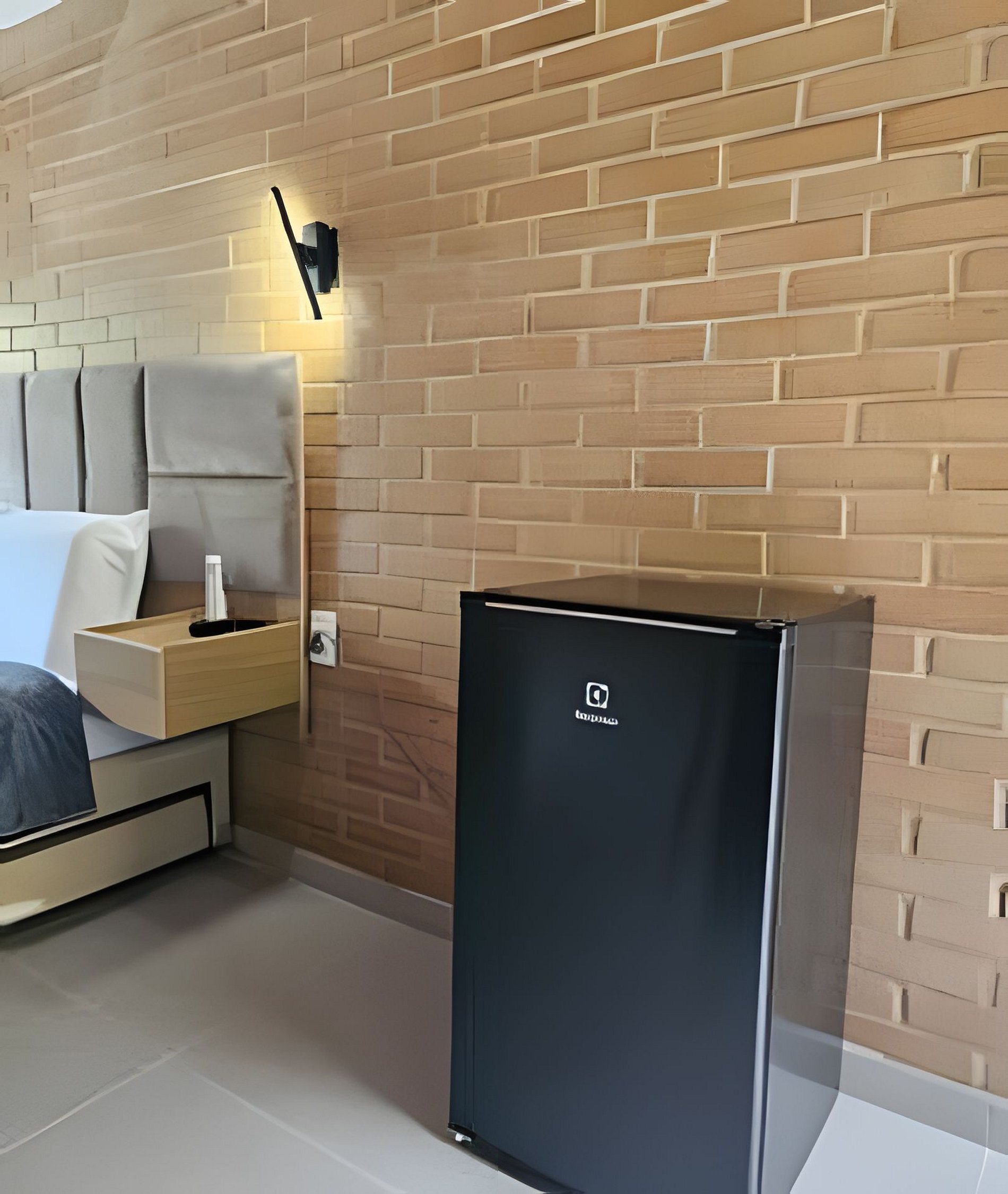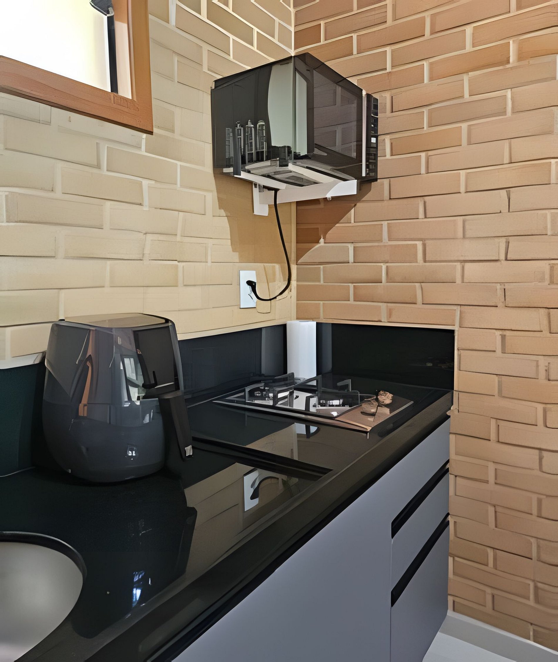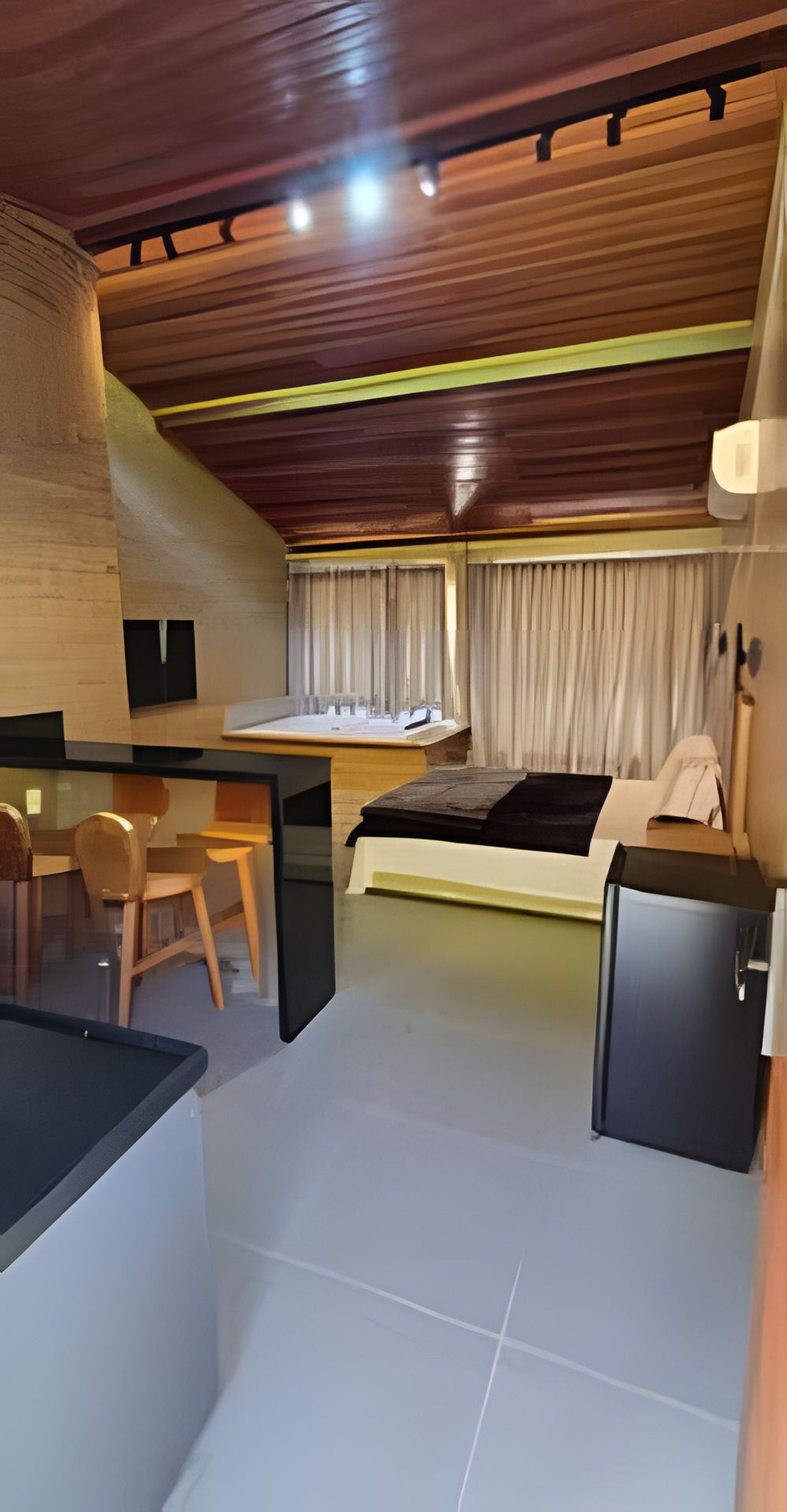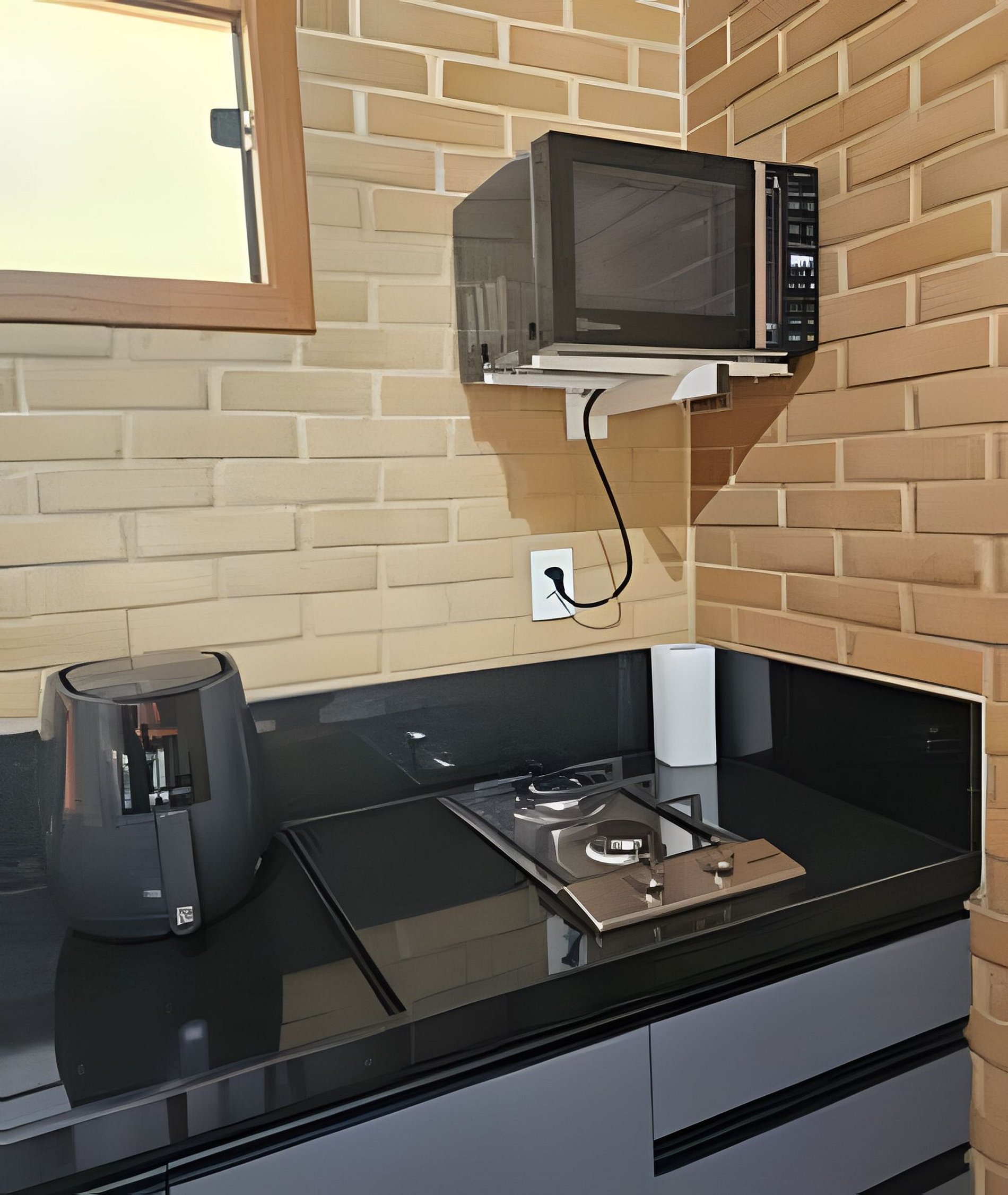 • Cozinha compacta: equipada com utensílios básicos e balcão para refeições rápidas.